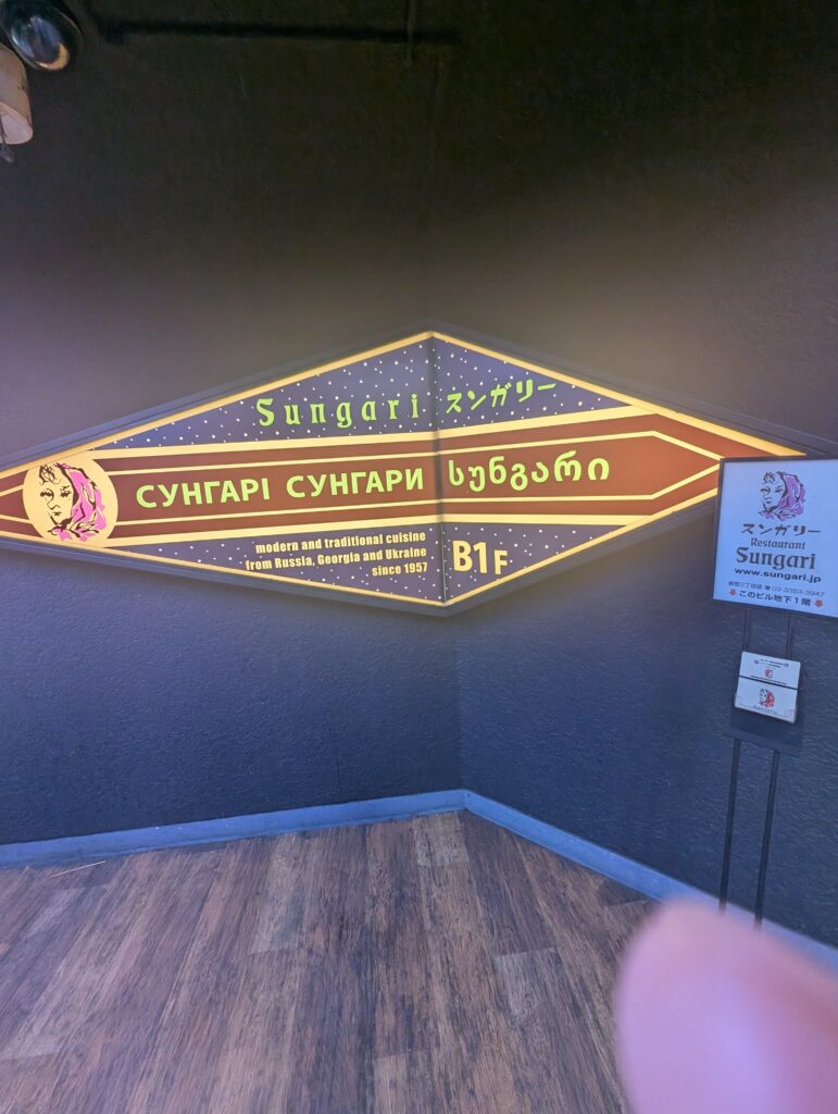 新宿に店を構える、スンガリー新宿三丁目店で食事をしました。ロシア、ジョージアあたりの料理を出しているお店、ドリンクを1杯注文してコースで7000円程度、素晴らしい!店の雰囲気、客層、接客はピーク時間だったこともありベストでなかったかもしれませんが問題なし。ゆっくりとロシアンな雰囲気に浸ることができました♪